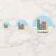 Start encouraging a love of science early with this chemistry themed set of wooden alphabet blocks featuring the chemical formula for oxytocin, the "cuddle hormone". Mixed around the elements of the formula are blocks with tools and structures to showcase some of the variety of concepts and fields associated with chemistry, including test tubes, a flask, molecular structures, and an electron orbital. A pattern of Bohr model atoms in pale blue on a sky blue background creates a cute wallpaper to sit behind the white baseboard and tan carpet and sets a simple scene for the blocks. Customise the message in the carpet portion with your soon-to-be little one's gender or a message of your choice to create a truly unique party decoration for your baby shower. This confetti will match with any other Future Chemist's Blocks product so that you can easily make your event as coordinated as you desire.