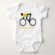 Future cyclist riding his bicycle custom baby bodysuit that displays a minimalist icon of a black cycling silhouette wearing yellow top and your text on white background.