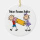 A stick figure boy and girl carry a huge yellow pencil and text reads "Future Famous Author", a cute design on T-shirts, mugs, cards, tote bags, and other items perfect for the person who loves writing!