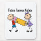 A stick figure boy and girl carry a huge yellow pencil and text reads "Future Famous Author", a cute design on T-shirts, mugs, cards, tote bags, and other items perfect for the person who loves writing!