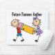 A stick figure boy and girl carry a huge yellow pencil and text reads "Future Famous Author", a cute design on T-shirts, mugs, cards, tote bags, and other items perfect for the person who loves writing!