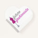 Spiral notebook design features an original marker illustration of a pink sewing costume or fashion designer's dressform mannequin, with FUTURE FASHIONISTA in a fun font.