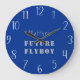 Cute wall clock has "Future Flyboy" in stencil text and Air Force blue background is the perfect combo for baby airmen! Personalise with child's name