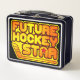 Bold text design in orange, yellow and red tones with the text FUTURE HOCKEY STAR and a hockey stick design.