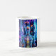 A glowing human form stands against a backdrop of futuristic skyscrapers, with vibrant colours and energy points illuminating various parts of the body. The high-tech cityscape reflects neon lights, creating a dynamic and energetic atmosphere.