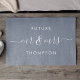 Future Mr and Mrs Hand Modern Script Dusty Blue Doormat