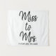 custom miss to mrs backdrop, personalised bridal shower photo booth, boho bachelorette party sign decor, hen weekend trip decorations tapestry, rustic photobooth for her bride, future mrs back drop prop, black and white wedding banner, modern minimalist chic elegant summer, calligraphy script to be autumn, fall winter spring simple minimal