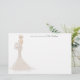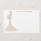 Personalised note cards with an illustrated bride. Many wedding gown, flower bouquets, hairstyles, and skin tones to choose from. Back of note card features a lace pattern.
