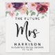 Modern "The Future Mrs" personalised wine labels for your bridal shower. The top border features burgundy, red and blush pink watercolor florals and greenery and "Mrs" written in a large elegant script. You can personalise with her future married name, first name and shower date.