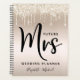 Luxurious and elegant "Future Mrs" personalised champagne gold wedding planner with faux gold glitter drips. "Mrs" is written in a large elegant script, and you can personalise with your names.