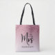 Chic pink ombre "The Future Mrs" personalised tote bag to announce your engagement or as a fun gift for a friend engaged to be married. Sparkly faux glitter drips down the top of the bag, "Mrs" is written in a large elegant script and you can personalise with a name.