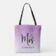 Chic purple ombre "The Future Mrs" personalised tote bag to announce your engagement or as a gift for a friend engaged to be married. Sparkly faux glitter drips down the top of the bag, "Mrs" is written in a large elegant script and you can personalise with a name.
