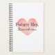 Future Mrs spiral wedding planner for bride to be. Personalised weekly / monthly agenda book. Make your own cover design with custom surname. Fun bridal shower party gift idea for her. Classy typography design with vintage pink heart. Upload your own image optionally. White or custom colour background. Great for planning wedding, appointments, important dates etc.