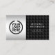 Professional business card in futuristic black and chrome metal effect with triangle pattern. This modern design is based on a simple template that allows you to customise your company logo, address, email, social media address, phone number, and mobile phone number.