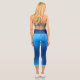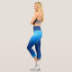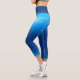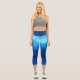 Futuristic blue design on capri leggings. Multiple shades of blue, electric lines