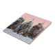 3D digital render of a science fiction futuristic city on a pink sky background