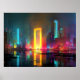 Futuristic City with Radiant Neon Portal Poster