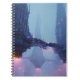 Massive structures hover above a futuristic city, enveloped in a foggy atmosphere. Illuminated windows and lights add to the sci-fi ambience.