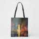 Futuristic Cityscape with Neon Reflections Tote Bag