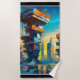 Futuristic Dystopian City, AI Generated Painting Beach Towel