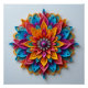 An extraordinary 3D papercraft masterpiece showcases a vibrant, multi-layered floral mandala bursting with an array of electric blues, vivid magentas, sunny yellows, lucid teals, and glowing oranges. Each petal and leaf is meticulously cut, scored, folded, and layered from high-quality colored paper, producing incredible depth and complex textures. Within select petals, stylized eye-like motifs—layered contrasting paper circles with tiny, reflective paper 'gems' at their centers—add an intriguing focal point. Encircling the central bloom are ornate rings of brightly colored paper filigree, precise geometric patterns, and delicate quilled spirals, all crafted with exceptional detail. Set against a clean, minimalist background, strategic lighting enhances the elaborate, three-dimensional structure with crisp shadows, evoking a futuristic, bio-digital or alien artifact esthetic. This high-quality, emotion-evoking piece seamlessly blends intricate craftsmanship with a visionary, fantasy-inspired design.