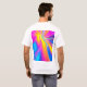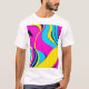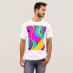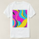 This T-shirt design features a bold and modern abstract pattern combining vibrant geometric shapes with flowing lines. The design incorporates bright, neon colours like electric blue, neon pink, and sunny yellow, creating a dynamic and energetic feel. A subtle gradient and textured layers add depth, giving the artwork a futuristic yet playful vibe. Perfect for anyone seeking a stylish, eye-catching look that blends modern aesthetics with a fun, youthful spirit.
