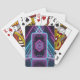 This design is a striking and futuristic take on a classic playing card back. It features an intricate, symmetrical geometric pattern brought to life by vibrant, glowing neon lines in electric blues and radiant pinks. The design evokes a sense of modern, cyberpunk style, making it a perfect match for gamers, tech enthusiasts, or anyone looking for a unique and stylish design.