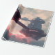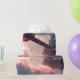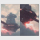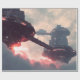 Massive futuristic structures float majestically above the clouds connected by bridges. The warm glow of sunrise adds a serene atmosphere.
