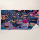 Futuristic Retro Arcade in Outer Space Beach Towel
