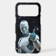 Show off your love for AI with this sleek silver-blue robot case, glowing eyes and futuristic vibe. A bold sci-fi phone cover featuring a confident robot in a digital galaxy grid background
