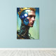 The Futuristic Science Fiction Cyborg Man Wall Art poster features a futuristic cyborg lady against a blue background, AI created with the human designer directing and producing the work of art.