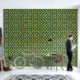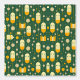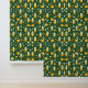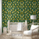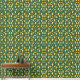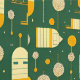 A unique pattern of futuristic train pod shapes intertwined with abstract trees in soft yellow and orange hues on a green background. This playful and modern design creates a whimsical, futuristic landscape, perfect for fans of imaginative and creative artwork.