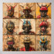 This striking collection of nine abstract, futuristic warrior masks combines vibrant graffiti influences with bold, raw energy. Each figure is adorned with unique headgear, blending elements of street culture, sci-fi, and ancient armour. The chaotic brushstrokes and rich textures offer a gritty, urban aesthetic, while the vivid colours create an intense visual impact. This dynamic wall art is perfect for modern spaces seeking a bold, avant-garde statement that fuses the future with street art’s rebellious spirit.