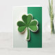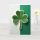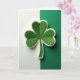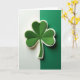 The front design shows a plush four-leaf clover centered with tidy symmetry, its heart-shaped leaves and slim stem covered in deep emerald flocking that looks soft enough to brush with your fingertips 💚. A thick halo of white fuzz traces every curve, like a gentle outline that makes the clover feel hugged and cherished. Behind it, the background is split straight down the middle by a narrow vertical seam, with bright white on the left and a darker green on the right ☘️. That sharp divide sets up a sweet, together-apart mood, like two friends leaning in from different sides to meet at the same lucky symbol. Near the top, “Happy St. Patrick’s Day” sits centered in crisp white lettering, standing out clearly over the darker half while still reading well across the split. Soft lighting adds a slight shadow along the clover’s edge, most noticeable where it falls onto the darker green side. The white border looks extra fluffy at the leaf tips, and the background seam runs straight through the clover’s centerline. Share St. Patrick’s Day sentiments with someone special.