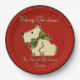 This paper plate features the cutest little scottish terrier with a great big green bow sitting patiently on a red, black & gold plaid background. Makes a wonderful gift tray for your homemade cookies or order several for seasonal dinnerware.