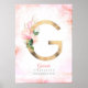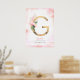 G Letter Monogram Gold Leaves Pink Magnolia Floral Poster