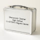 This is a standard metal lunchbox that appears to work just fine. We designed this box ourselves with an uploaded photo and custom text on the front and back. It looks absolutely beautiful except the front of the lunchbox is not centered like it shows in the photo. The print borders don't align with the inset flat part of the box where the preview photo online showed it perfectly centered in there. The back looks nice and centered though.