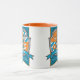 Gabe name meaning shield orange blue teal mug. Royal crown knights style crest shield monogram letter G art name mug perfect for kids and teens in shades of orange, teal blue, and grey. Personalise with your own name beginning with G and name meaning or a message or subject for a personalised touch. Reads Gabe God is my strength. Compassionate and fearless. Other names available on mugs and other matching products. Unique royal style crest drawing, featuring a wolf / dogs head, crown, star and initial G monogram letter, graphic art and design by Sarah Trett www.sarahtrett.com for www.mylittleeden.com
