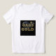A playful and eye-catching design featuring a cartoon-style gold bar, surrounded by a collection of colourful gags and props. The phrase "Gags for Gold" is written in a bold, playful font across the front of the shirt. The design suggests a fun and lighthearted theme, possibly related to a comedic or treasure-hunting adventure.