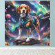 A beagle in a sparkling galactic outfit runs through an impressive, cosmic landscape. Tasted with stars and nebulous patterns, this image combines adventure with interstellar magic.