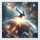 A breathtaking illustration of a breakdancer performing a powerful freeze move in the middle of a galactic explosion. This cosmic street art celebrates the fusion of urban energy and universal wonder — ideal for dance lovers, sci-fi fans, and space dreamers.