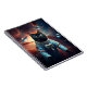 A captivating image of a black cat dressed as an astronaut, gazing confidently into the cosmos. Surrounded by flying saucers and a vibrant nebula, the cat embodies a sense of adventure and mystery.