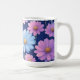 Transform your coffee routine with the "Galactic Flower Glow" mug in large, a Zazzle exclusive! This captivating design showcases vibrant blue and purple daisies illuminated against a twinkling starry night sky, radiating a celestial charm. The rich colors and golden flower centers add a warm glow, perfect for sipping your favorite hot beverage. Made with premium materials, this mug is ideal for those who adore floral beauty and cosmic vibes. Available in this style and size only.