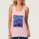 I had purchased the flowy tank for another graphic so I knew it would fit. Nice light fabric, perfect for summer, doesn't cling. The white can be a little shear, you can definitely see your bra through it so if that bothers you, go for a darker color. I have worn this out during the day, and at the gym. The colors are washed out. The blue is more of a pale light blue as compared with the graphic displayed on the website. I would have liked the colors a little more saturated but still nice.