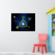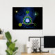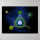 Inspired by crop circle designs, The Cosmic Designs series consists of 12 or 13 posters, either with or without a black border. This particular image is titled "Galactic Triangle".