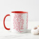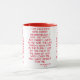 This two-tone mug features an anchorage bold print font with red letters displaying the "Galatians 2:20" KJV bible scripture verse over a white background. This verse is referencing the Book Of Galatians 2nd chapter showing the 20th verse in this bible scripture quote theme from the King James bible. The rim & handle are glazed in matching colours available in 11-ounce or 15-ounce sizes microwave and dishwasher safe ceramic construction.