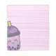 Custom purple stationery notepad featuring purple college-ruled lines and cute purple galaxy boba tea in the left corner. Measures 5.5" x 6" inches. Includes 40 tear-away pages, and cardboard backing for sturdy writing. For custom design requests, contact me through the shop's message button.