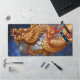 The mat depicts an image of a golden dragon flying through a blue galaxy. A wonderful addition to anyone who loves dragons!