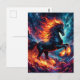 This dynamic postcard features artwork of a fiery black horse rearing up in the celestial realm, representing the "Year of the Horse" Chinese zodiac. For 2026, the animal is a horse and the element is fire. In this vibrant artwork, both are combined in a radiant black, orange, and space blue watercolor artwork with saturated colors.