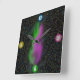 This vibrant square wall clock features a mesmerising galaxy-inspired design, with a swirling nebula of green and purple hues set against a star-speckled backdrop. The bold, colourful number markers (12, 3, 6, and 9) pop against the cosmic canvas, making it both functional and visually captivating.